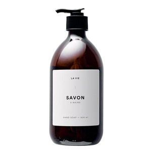 FROM LEFT TO RIGHT: Lavender Orange Hand Soap, Acadia Round Board, Ivory/Navy Plaid Napkin