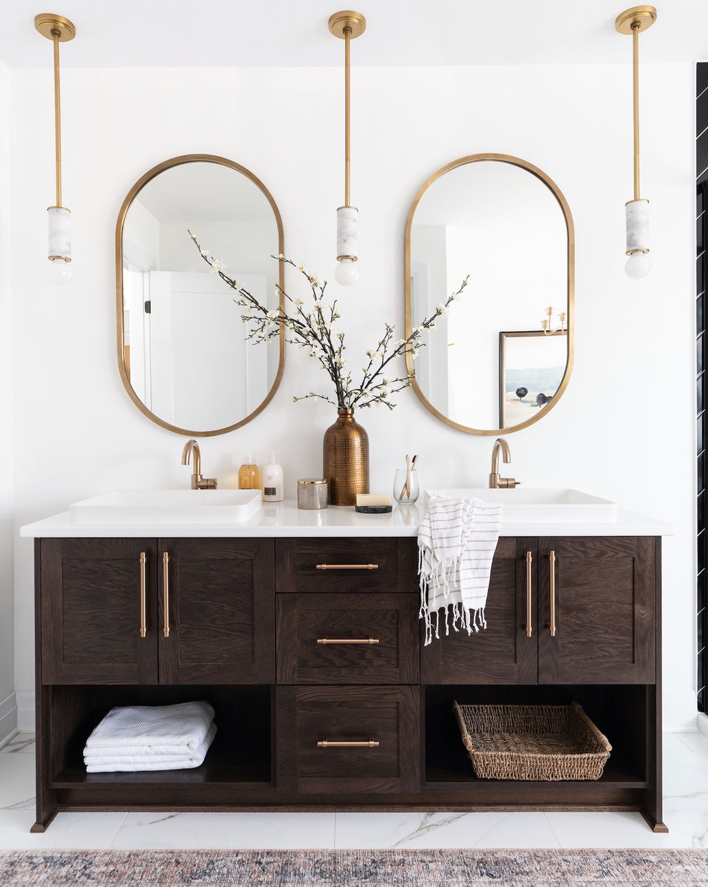 Our vision for the Pinefield was a modern-meets-traditional home that would wow. From the beginning, our direction for this space was ‘uptown chic’. We used a mix of traditional design elements in combination with more modern touches like the statement light fixtures. The base palette for the home was classic black-and-white, with the addition of some warmer neutrals and deep forest green to breathe life into the design. The result is a stylish, high contrast environment that feels sophisticated but approachable.